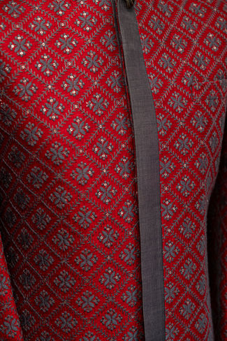 Dark Red Embroidered Sherwani